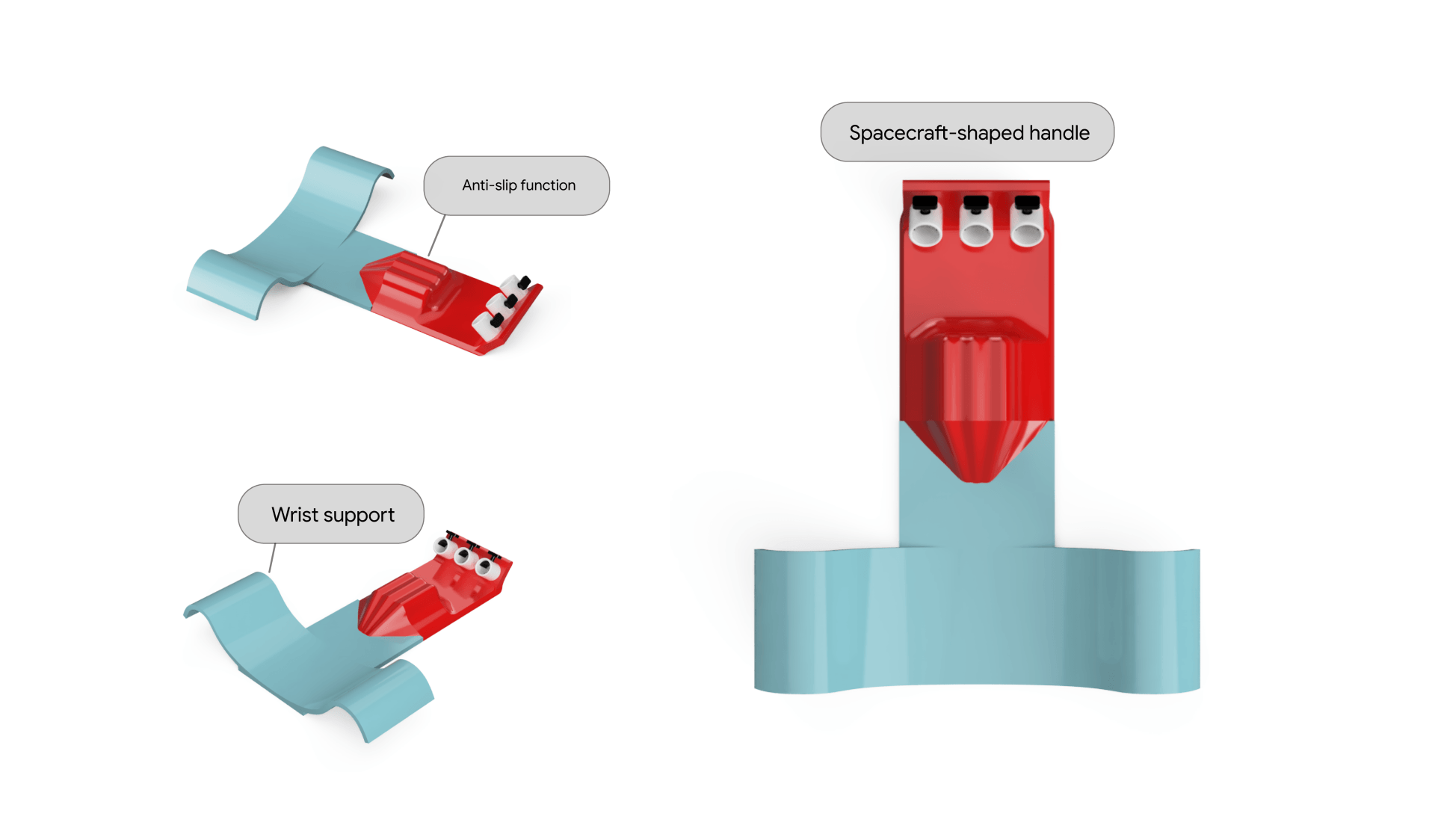 One size doesn’t fit all. My multi-pen project can be used for all children regardless of their abilities. The overall design shape is fun and functional, and delightfully child-friendly. Research shows that sensory objects help to stimulate curiosity. I was able to design and produce, using 3D printing, a prototype that was durable and safe. Ball bearings underneath the tool made it move easily with less friction. I put three pen holders into the design so that users might enjoy the harmony of colours. The design provides immediate positive feedback for the children and encourages further engagement. Flexible, adjustable grips allow for personalised use.